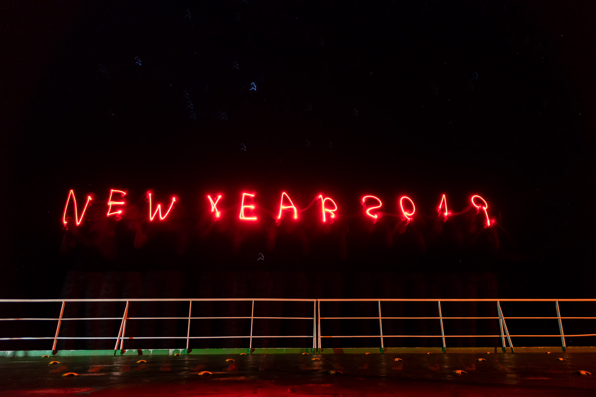 Am 24.12. um 21 Uhr werden alle auf die Brücke gebeten. Die Crew versammelt sich und es wird mit süssem Sekt und Panetone auf Weihnachten angestossen. Danach geht die Party weiter, aber nicht bei den Italienern, sondern im Aufenthaltsraum der philippinischen Besatzung. Sofa-Ecke, grosser TV, 2 Mikrophone und ein Liederbuch sorgen für einen vergnügten Karaoke-Abend. Roman und ich singen zur Freude der Crew ausgelassen mit und schaffen es sogar mit dem Song „Country Roads“ die volle Punktzahl zu erreichen. Das ist an diesem Abend nur uns vergönnt geblieben und ich bin beeindruckt von Romans bassiger Stimmgewalt. Wir sind im Kreise der Karaoke-Bande aufgenommen und wir tanzen, reden, singen und trinken ausgelassen bis 3 Uhr nachts. Die Gastfreundschaft ist rührend.