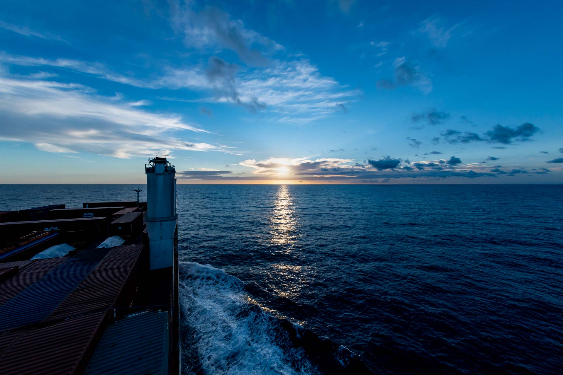 Wir sind mit der Grande Amburgo 5719 nm also 10600 km gefahren, haben dafür 22 Tage gebraucht mit einer Durchschnittsgeschwindigkeit von ca. 17.5 Knoten was 32.4 km/h entspricht. An Bord hatten wir über 1200 Fahrzeuge (die alten nach Dakar, Senegal, die neuen nach Brasilien) und um die 350 Container (Inhalt unbekannt). Zudem haben wir gefühlt 1 Tonne Pasta gegessen.