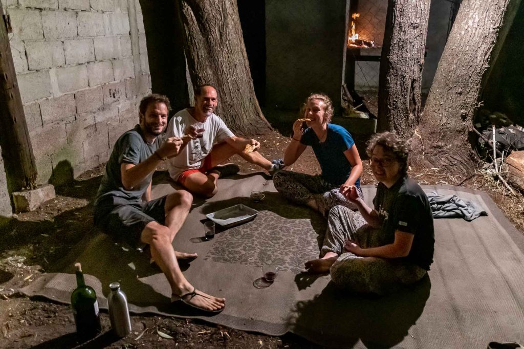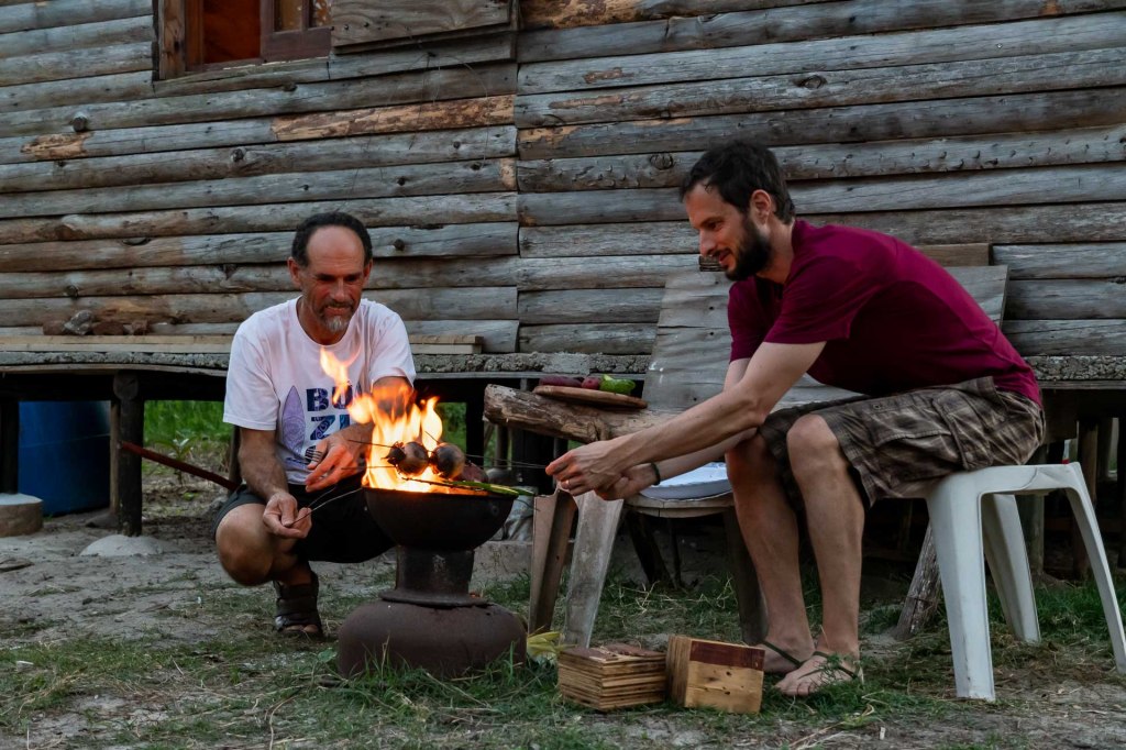 Am ersten Abend lernen wir uns kennen und machen leckeres Gemüse auf dem Holzgrill in der Abenddämmerung. Hugo ist kein typischer Uruguayaner, er läuft nicht den ganzen Tag mit dem Matebecher und einer Thermosflasche unter dem Arm geklemmt herum, er hat keine drei Hunde, keine Tattoos und ist Vegetarier. Das finden wir sympathisch. Roman kämpft sich fleissig und tapfer durch das Spanisch. Ich bin sehr froh, dass doch noch einiges von meiner Zeit in Ecuador hängengeblieben ist und ich kann mich ganz gut verständigen.