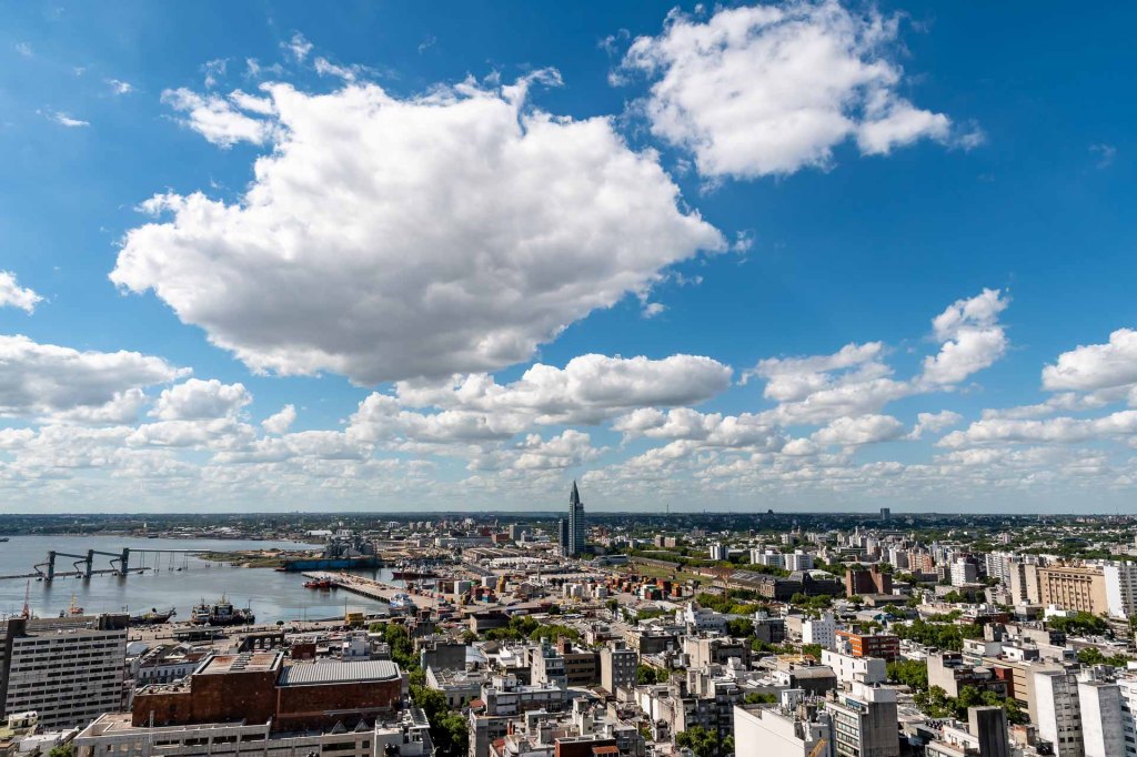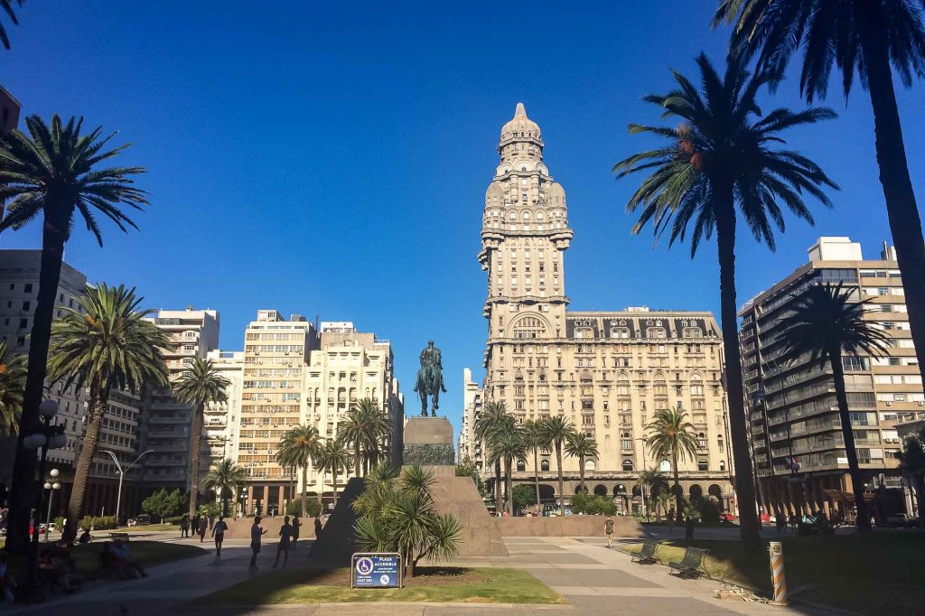 Wir freuen uns über die Anfragen und treffen direkt am nächsten Tag Rosanna. Der Treffpunkt ist vor dem wohl schönsten Gebäude Montevideos, dem Palacio Salvo. Bei Erbauung im Jahr 1928 war es für 7 Jahre der höchste Turm Südamerikas und ein nobles Hotel. Mittlerweile sind aus den ehemaligen Hotelzimmern Apartments geworden. Nach der Begrüssung steuert sie direkt auf das Gebäude zu und fragt, ob wir es schon besucht haben. Wir verneinen, sie schmunzelt und verrät uns, dass man normalerweise nur mit einer Führung nach oben kommt, wir aber heute unsere eigene Führung bekommen. Wir sind etwas verdutzt, aber mittlerweile gewohnt einfach zu folgen und zu schauen was passiert. Wir steigen in den Fahrstuhl und fahren in den 21., den vorletzten Stock. Schon beim aussteigen zückt Rossana einen Schlüssel und schliesst dann eine Wohnung auf. Wir stehen mitten in einem wunderschönen Apartment mit einem unbeschreiblichen Blick auf die ganze Stadt. Unwahrscheinlich stauen wir aus den Fenstern und sind begeistert. Früher hat sie hier selbst drin gelebt, nun vermietet sie das Apartment an Gäste oder Freunde. Als wenn das nicht schon genug Überraschung wäre, zieht sie aus ihrer Tasche eine Bierflasche und eine Packung Chips. Wir geniessen das Apero über den Wolken Montevideos und erzählen von unseren Leben.
