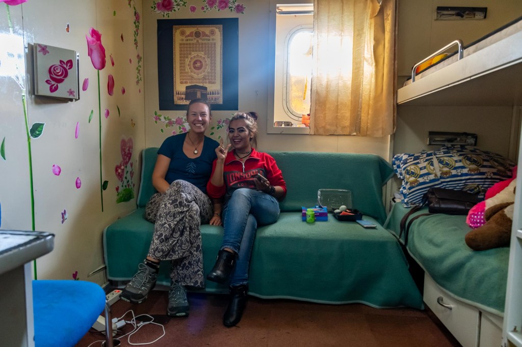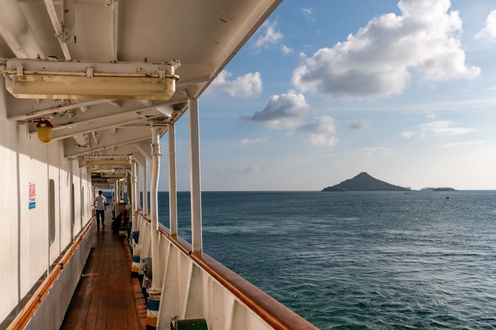 Alle drängen an Deck und als ich der Schiffscrew unser Ticket zeige, werde ich etwas bemitleidenswert angeschaut und er signalisiert mir den Weg zu den Gängen. Wir können uns einfach irgendwo ein Plätzchen suchen. Wir laufen das Schiff ab und finden zunächst einen guten Platz draußen bei frischer Seeluft. Doch als das Schiff voller und voller wird, die Männer um uns herum anfangen zu rauchen und Fotos von uns machen, wird es mir zu bunt und zum Glück finden wir im Gang bei den Offizieren eine ruhige Ecke.