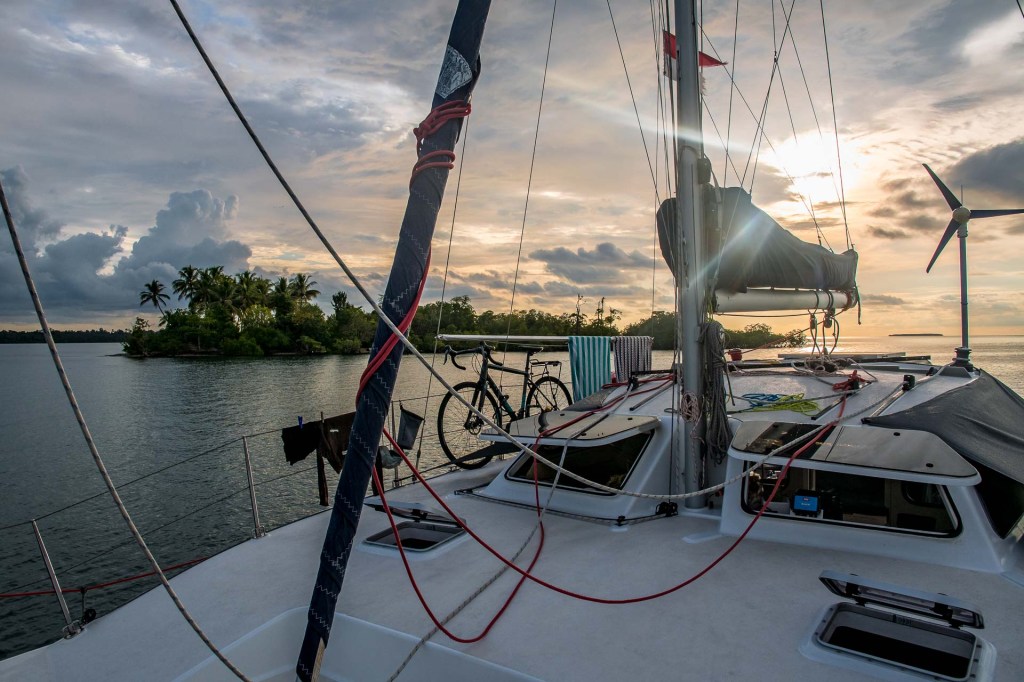 Nach 5 Tagen harter Arbeit bei brütend heißen Temperaturen können wir es alle nicht erwarten los zu segeln. Die Situation mit dem Corona-Virus hat sich mittlerweile (Stand mitte März) sogar bis Sorong ausgebreitet und auf der Straße rufen uns die Menschen “Corona” entgegen. Drei Fälle soll es hier nun haben und zwei Tage nach unserer Anreise wird der Flughafen dicht gemacht. In Europa überschlagen sich die Nachrichten über ausverkauftes Toilettenpapier, Social-Distancing und Lockdowns. Wir sehen also zu, dass wir so schnell wie möglich aus der Stadt kommen, verzichten auf das beliebte Händeschütteln und sind dankbar Zuflucht von diesem Chaos auf unserem Segelschiff zu finden.