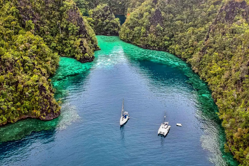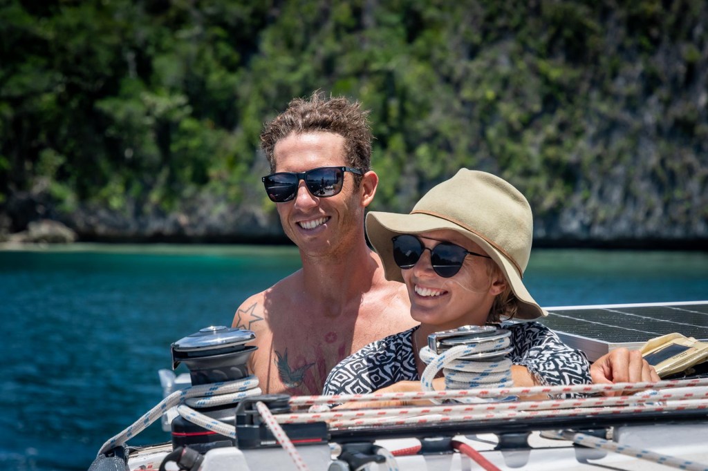 Unser Segeltrip führt uns zunächst zu den Misool Inseln wo wir, gemeinsam mit einem südafrikanischen Segelpärchen, die Region erkunden. Schwimmen im See voller Quallen, schnorcheln an wunderschönen Riffwänden, gehen mit Taschenlampen durch eine Höhle auf Entdeckungstour und genießen Sundowner am Strand.