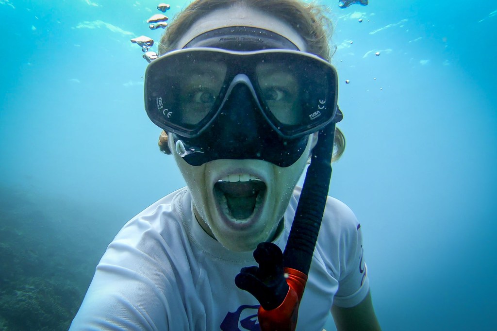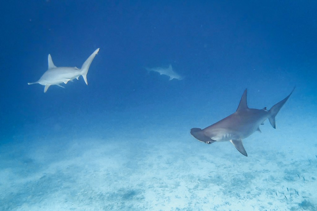 Ja, so haben wir uns in etwa das Leben als Segler vorgestellt. Roman und Kyle werden sogar noch bei einem Nachmittags-Schnorchelgang von drei neugierigen Hammerhaien begrüßt.