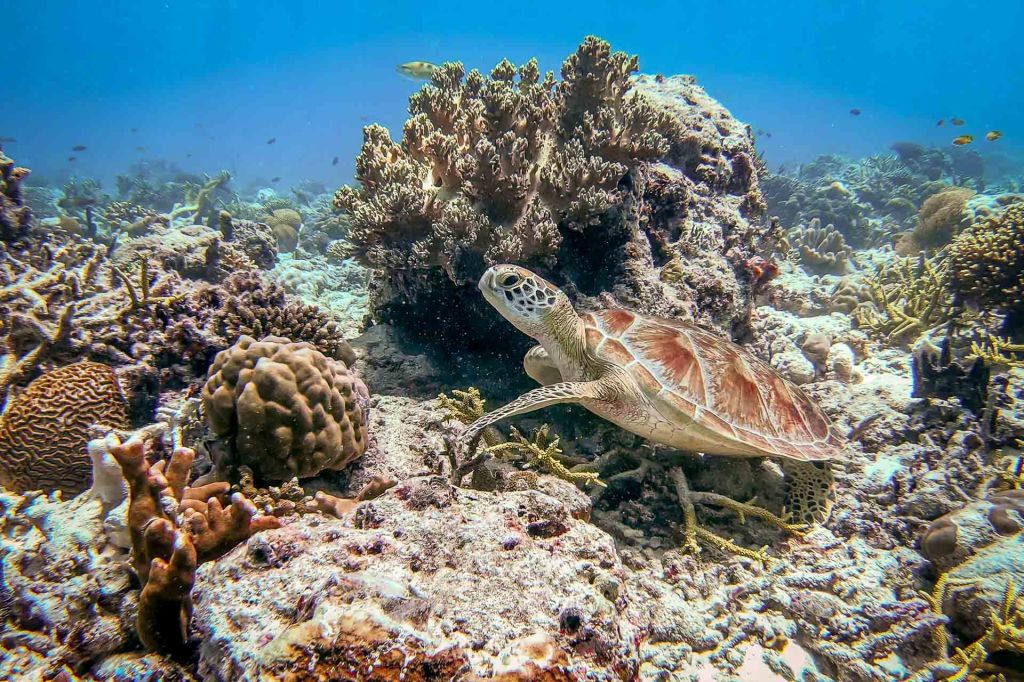 Das Wasser um uns ist unbeschreiblich blau und die Unterwasserwelt fantastisch. Wir schnorcheln mit Schildkröten, beobachten Tintenfische, winken einem vorbei schwimmenden Dugon zu und verlieben uns jeden Tag auf das Neue in die wundervollen bunten Korallen und Fische. Auch das Tauchen mit der einzigen hier vorhandenen Tauchschule ist grandios, vor allem die zwei sehr neugierigen, hochgiftigen aber friedlichen Olivgrün-Seeschlangen begeistern uns. Roman wird sicherlich nochmals ein Best-Of Video zusammenstellen, wenn er dazu kommt.